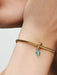 This 14k gold-plated dangle charm is made up of a triple knotted circle that resembles an infinity sign. Carrying a faceted sea aqua blue man-made crystal, wear yours as a symbol of forever.