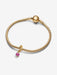 This 14k gold-plated dangle charm is made up of a triple knotted circle that resembles an infinity sign. Carrying a faceted phlox pink man-made crystal, wear yours as a symbol of forever.
