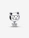 Celebrate feline friends. Crafted from sterling silver, this charm mixes retro styling with a modern touch. The cat's face is decorated with engraved lines while the bow dangle is dotted with sparkling pavé.