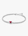 A bold twist on the tennis bracelet, this cubic zirconia bracelet is defined by sparkle. A large red heart-shaped stone punctuates a glittering row of clear cubic zirconia pavé, with another small stone detail at the endof the chain.