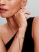 Crafted in 14k gold plating, our adjustable bracelet has two moveable end caps, both set with shimmering stones. A sliding clasp makes it easy to adjust to your size. The perfect present for your loved ones, it can be styled by lifting either end cap and adding your favourite charms.