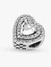 This sterling silver charm features an elevated heart-shaped stone at the centre, framed by two rows of clear cubic zirconia for extra sparkle. A cut-out heart pattern along the sides adds even more sweetness.