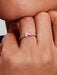 The Sparkling Pink Bow Ring in sterling silver features two heart-cut fancy pink cubic zirconia clear cubic zirconia and a pavé-adorned band. This unique bow motif ring embodies festive light and charm, perfect for any occasion.
