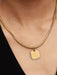 Crafted with expert precision, this Pandora square pendant features a 14k gold-plated engravable square disc framed by a sparkling halo of flawless cubic zirconia stones. Renowned for their multi-faceted brilliance, these stones add vibrant flashes of colour that complement the pendant’s warm golden glow. The 14k gold plating is designed to endure, applied over a unique metal blend core to ensure lasting elegance. This minimalist piece effortlessly blends personalization with lasting sophistication, making it an essential addition to any refined jewellery collection. Please Note: We do not currently offer engraving on Pandora charms or jewellery either online or instore