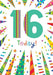 This sophisticated 16th birthday card from Paper Rose features a vibrant explosion of color with "16 Today" elegantly displayed at the center. The refined design combines bold energy with tasteful styling, making it a distinguished way to celebrate this significant milestone.