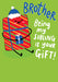 The Nigel Quiney Christmas card features a whimsical snowman holding a lantern amidst a snowy woodland scene, surrounded by presents. This elegant design is perfect for sending sophisticated holiday wishes to a brother, blending festive charm with warmth.