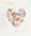 This Birthday themed card from Paperlink features a beautiful, high quality artistic design, depicting a heart of delightful flowers interspersed with stars and finished with the words 'Mum Love Birthday'.
