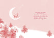 The Nigel Quiney Christmas card features a sophisticated festive image of two rabbits sitting in a crescent moon, admiring a serene winter wonderland. This elegant design is perfect for sending warm and refined holiday wishes to a fiancée at Christmas.