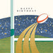 This humorous Birthday themed card from Paperlink features a beautiful, High Quality Artistic design, depicting a rugby ball passing over the posts with the words 'happy birthday'.
