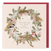 This Paperlink Christmas card is crafted from premium quality stock, delivering a luxurious feel. It features a delicate festive wreath adorned with two robins and presents, rendered in soft pastel tones. Accompanied by a warm festive message and a matching envelope, it offers an elegant way to send your holiday greetings to a friend.