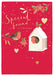 This Festive-themed greeting card from Paperlink features a high-quality classic red card with the image of a pair of Robins surrounded by festive imagery on the front. The stylish font carrying a message of care and love 'To a very special friend at Christmas' takes this card to another level of sophistication, making it the perfect gift to express your care to a lovely friend. The card stock and envelopes guarantee an exquisite finish. Bring joy this winter with Paperlink's exquisite card. This card of from the Violet range.