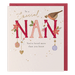 Celebrate the festive season with the Paperlink iconic Christmas card featuring the word "Nan" in vibrant, colourful letters alongside charming robin redbreast and festive baubles. This thoughtfully designed card is a perfect way to show your appreciation and warm wishes to your Nan, adding a personal and joyful touch to your Christmas greetings.