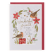 This Paperlink Christmas card is crafted from premium quality stock, delivering a luxurious feel. It features a delicate festive wreath adorned with two robins and presents, rendered in soft pastel tones. Accompanied by a warm festive message and a matching envelope, it offers an elegant way to send your holiday greetings to a friend.