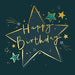 This Birthday themed card from Paperlink features a beautiful, High Quality Artistic design, depicting a stylish large gold star surrounded b smaller stars finished with the words 'Happy Birthday'.