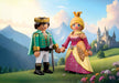 Figures: 1 prince with cape, 1 princess with detachable hoop skirt; Accessories: 1 sword, 1 fan