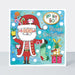 This fun and cheerful Christmas card features hand painted Christmas characters and a Father Christmas design. Each card is finished with gold foil and a hand-applied 3D badge. Supplied with a red envelope.