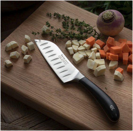 The 14cm santoku knife has a wide scalloped blade for precision slicing and dicing.Fully forged from high quality German stainless steel with a hand applied 15° edge for superior sharpness, and an ergonomic DuPont™ handle. All Signature kitchen knives are gift boxed.