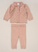 This Rock a Bye Boutique Knitted Two Piece in dusky pink features a collared fancy knit cardigan paired with matching trousers, designed for babies aged 0-3, 3-6, and 6-12 months. Crafted with soft, breathable yarn, it provides gentle warmth and comfort, making it an ideal outfit for delicate skin while offering a stylish, coordinated look for special occasions or everyday wear.