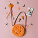 This has to be the cutest place to stash your 'trick or treat' treasures! Our little pumpkin bag is made from the softest fur fabric, with sweet embroidery details. Fully lined in pink stripy fabric, this bag features a magnetic dot closure and a gold strap with a break point for safety.