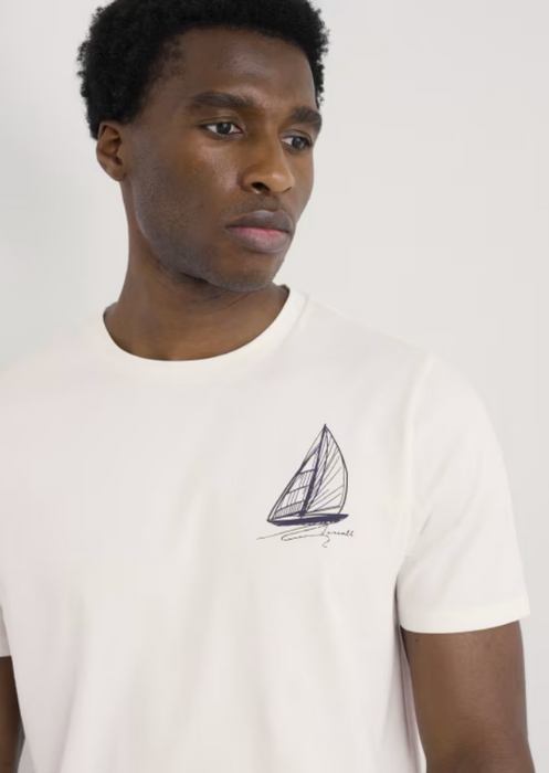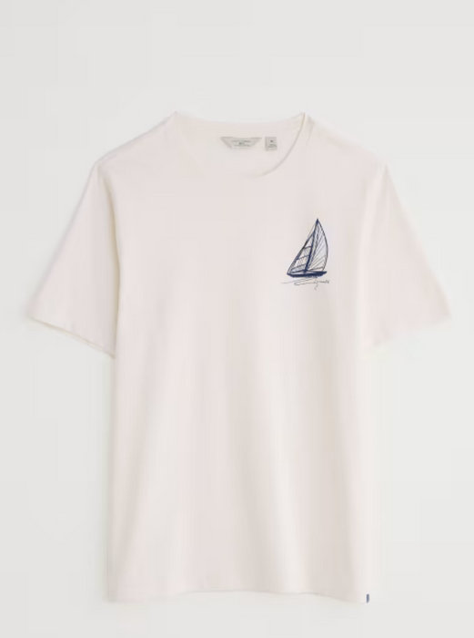 Seasalt Men's Loggerhead Organic Cotton T-Shirt In Sailboat Sketch Chalk