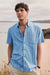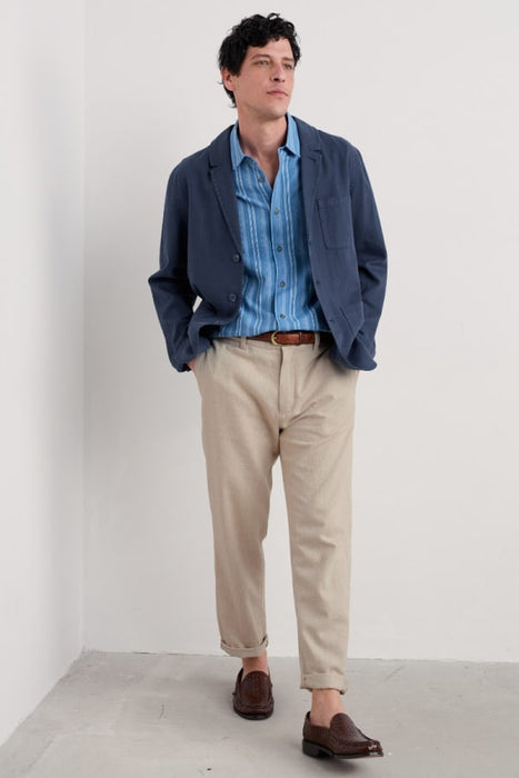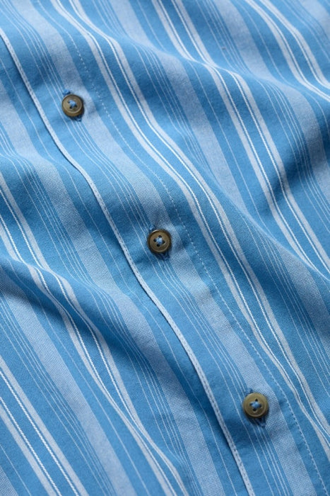 A short sleeve shirt with a tonal pattern in a breathable organic cotton blend. The easy fit and split hem make it great for layering, while a chest pocket adds a classic touch. Wear buttoned up or loose over a T-shirt.