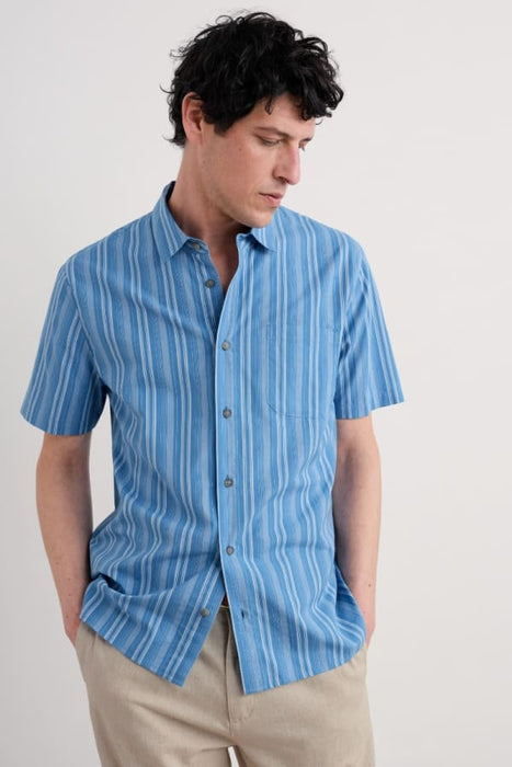 Seasalt Men's Skylight Cave Short Sleeve Shirt In Calligraphy Clear Sky