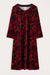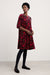 A knee-length dress in a supple velvet, made with a blend of recycled and virgin polyester with a touch of stretch, that's sure to find a special place in your wardrobe for winter celebrations. The easy shift shape and elegant boat neckline complement the luxurious sheen and handcrafted prints.