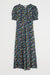 A romantic, vintage-inspired dress with a skimming Empire Line fit and shirring at the cuffs for a subtle blouson sleeve. The simple scoop neckline has a deep notch detail with a button fastening.