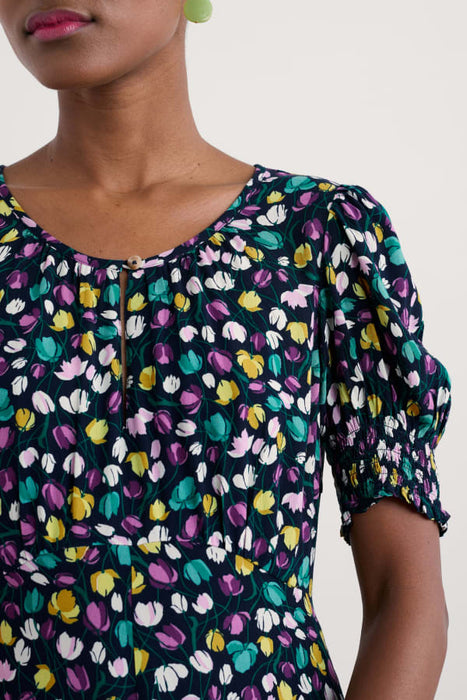 Seasalt Women's Marsh Violet Short Sleeve Empire Line Dress In Spring Tulips Maritime