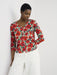 Seasalt Women's Studio Glass 3/4 Sleeve Top In Stripey Floral Moss