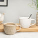 The embossed leaf mug is made from durable stoneware and is suitable for microwave use and is dishwasher safe for easy and convenient cleaning.