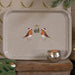 This small, charming Robin printed tray is perfect for festive drinks, serving food or making a lovely Christmas home decoration. Featuring two red-breasted Robins holding a sprig of mistletoe together on a neutral ground.
