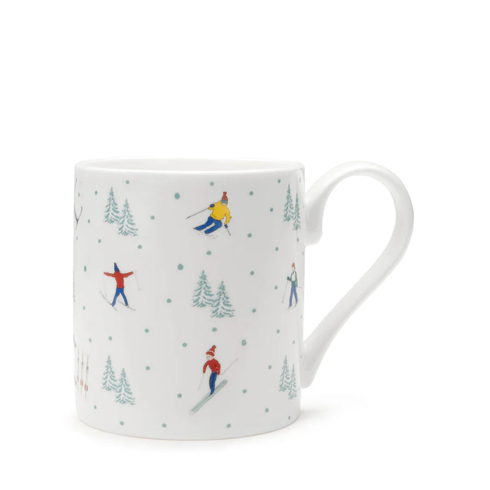 A fine bone china mug that celebrates Alpine living. Snowboarders and skiers dot the mountain in colourful outfits, whilst ski schools snake their way through the snow-capped fir trees with a collection of helmet-clad children. Presented in a gift box, this makes a lovely present for a snow sport enthusiast.