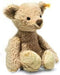 Soft Cuddly Friends Thommy Teddy bear is 30 cm tall and made of cuddly soft, caramel-coloured plush. His soles and paws are contrasted in short plush. Thommy has a beautifully shaped Teddy bear head with bright black eyes, a cute dark brown nose, an embroidered mouth and cuddly Teddy bear ears with a Steiff tag and stainless steel “Button in Ear”. Bean bags in his bottom, paws and soles make playtime even more fun and allow him to sit steadily.