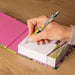 The perfect item for your desk in those “I mustn’t forget that” moments. This hard cover note block has 300 sheets of white paper with accent design. Sheet size 124 x 124mm.