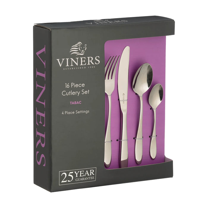 Add that special finishing touch to any table setting with Tabac. This versatile set is perfect for everyday and fine dining. The set includes 4 x table knives, 4 x table forks, 4 x tea spoons and 4 x dessert spoons.