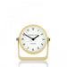 A cute contemporary alarm clock boasts a Nordic style. Clean, simple curves hold together the neat design. A metal stand and frame present a muted dove grey hue with a matt finish. The simple dial detailing contemporary black numerals, and a contrasting red alarm hand complete the clock's aesthetics. The Wren holds a silent movement.