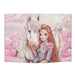 Fabulously beautiful: the large pink TOPModel jewellery box has a dreamlike model motif with a horse on the hinged lid and delicate flowers and trees all around. With plenty of space for small treasures in the main compartment and in the removable inlay with three compartments. Magical: when opened, 14 LED lights flash around the mirror in the inside lid.