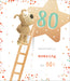 This birthday card from UK Greetings features Boofle the dog on a ladder hanging a gold star marked "80," celebrating a milestone with elegance. The message "Absolutely amazing at 80" offers a refined and heartfelt tribute to a remarkable 80th birthday.
