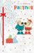 This sophisticated Christmas card from UK Greetings features Boofle as the Daughter & Son In Law gathered on floral half moon wreath, festively dressed and surrounded by gifts. Its elegant design captures the warmth of family celebration, making it a refined way to share heartfelt holiday wishes.