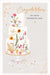 Celebrate the wedding day with this elegant UK Greetings card featuring a large floral wedding cake design in refined gold and pastel tones. The sophisticated artwork and graceful color palette make it a perfect choice to convey heartfelt congratulations on this special occasion.