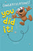 Celebrate achievements with this sophisticated congratulations card, featuring bold, vibrant letters that spell out your message with clarity and style. Its bright, colorful design brings joyful energy while maintaining an elegant presentation, perfect for honoring special milestones.
