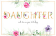 This sophisticated birthday card from UK Greetings features vibrant flowers and the heartfelt message "Daughter, with love on your Birthday." It offers an elegant and loving way to celebrate your daughter's special day.