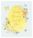 This sophisticated Easter card from UK Greetings features warm yellow tones with a prominent Easter egg and delicate floral highlights. The elegant "Easter Wishes Just for You" message makes it a perfect choice to convey thoughtful seasonal greetings.