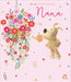 This sophisticated birthday card from UK Greetings features soft pink tones and an endearing illustration of Boofle the dog watering a large bouquet of flowers. Its elegant design offers a heartfelt way to celebrate Nana’s special day with warmth and charm.