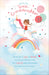 This elegant birthday card from UK Greetings features a sweet image of a small girl riding a unicorn over a rainbow, adorned with pastel tones and festive balloons. It offers a charming and graceful way to celebrate the special day of a great granddaughter.