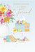 This sophisticated Easter card from UK Greetings features soft pastel tones, showcasing a vase of flowers alongside a large cake. It offers an elegant and charming way to send warm Easter wishes to a dear friend.