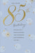 This sophisticated birthday card from UK Greetings features a charming pale blue tone. With the message, "85th" in bold gold writing, it offers an elegant and lighthearted way to celebrate this special milestone.