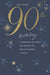 This sophisticated 80th birthday card from UK Greetings features a charming gold and blue look. With the playful message, "On your 90th Birthday" it offers an elegant and lighthearted way to celebrate this special milestone.