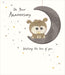 Celebrate your anniversary with this elegant UK Greetings card featuring two owls perched on a crescent moon surrounded by gold and silver stars. The thoughtful message and refined design offer a graceful way to honor your special bond.